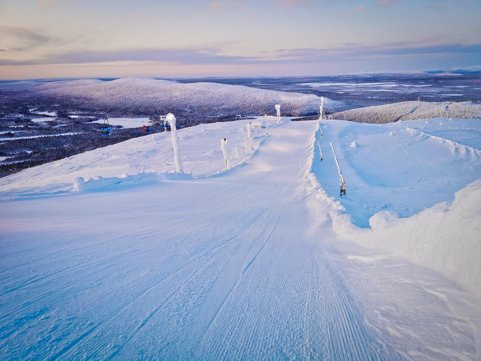Tras mamy tu statystycznie nie za wiele, sama górka ma około 500 metrów wysokości, ale… to jest jeden wielki plac zabaw z karłowatymi drzewkami na szczycie, które owiane śniegiem i silnym wiatrem tworzą niespotykanie nigdzie indziej bajkowe krajobrazy. Błogosławione szeregiem snowparków i nieskończonymi możliwościami jazdy poza trasowej (ang. freeride) Levi, gdzie wyciągi działają aż do 19:00 to miejsce na narciarskie doświadczenia wybiegające daleko poza nasze klasyczne wyobrażenia tego sportu! Jazda między grubo pokrytymi śniegiem drzewami, lasy, puch i piękna jakość śnieżnej pokrywy.
