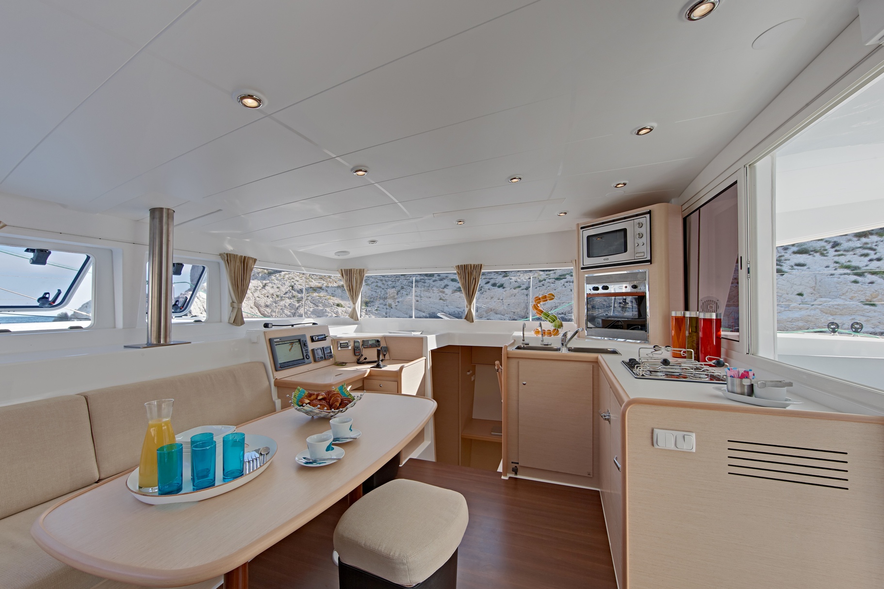 Uczestnicy rejsu zakwaterowani są w czterech kabinach dwuosobowych, w mesie jest zakwaterowany tylko Kapitan jachtu.