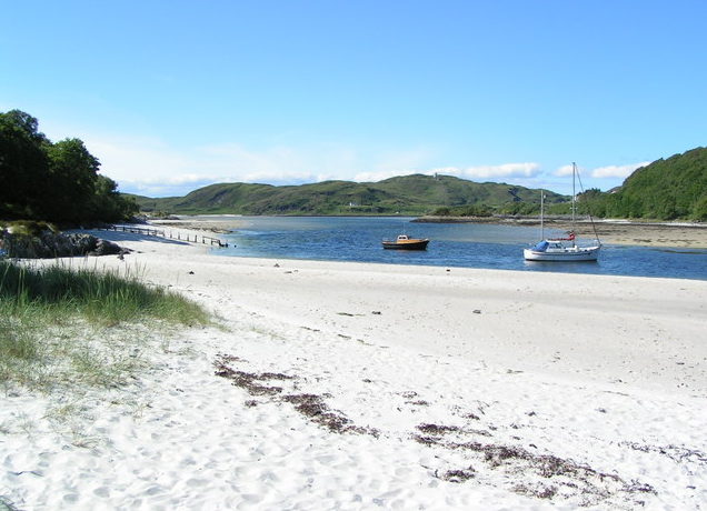 📆 DZIEŃ 6: Zwiedzanie okolic Morar – spacer po plaży (The Silver Sands of Morar) z pięknymi widokami na wyspy Rum, Eigg, Muck i Canna. Piaszczysta plaża rozciąga się tuż przy ujściu rzeki Morar. W słoneczny dzień, widoki są niesamowite: wspaniałe niebieska woda, błękitne niebo i białe piaski nadają temu miejscu iście tropikalny wygląd. Poniżej kilka zdjęć.