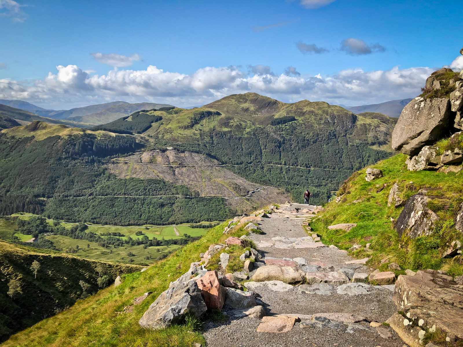 Strome podejście na Kinlochleven dodaje adrenaliny dość szybko, ale jak zawsze, spektakularne widoki to odpowiednia rekompensata włożonego trudu. Po początkowym podejściu, dalej przemieszczamy się starą wojskową drogą, która delikatnie kluczy po dolinie Glen Nevis. Na ostatniej prostej rysuje nam się potężny szczyt Ben Nevis (ale to na inny dzień) – póki co leśną ścieżką schodzimy w kierunku miasta Fort William.
